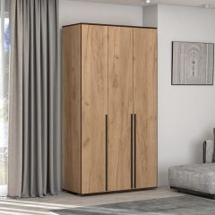Строгий и функциональный распашной шкаф "Норден" идеально подойдет современного интерьера Вашей комнаты. Все детали шкафа в цвете крафт золотой отделаны контрастной кромкой цвета венге, что в сочетании с черной металлической ручкой подчеркивает модный дизайн данного шкафа.